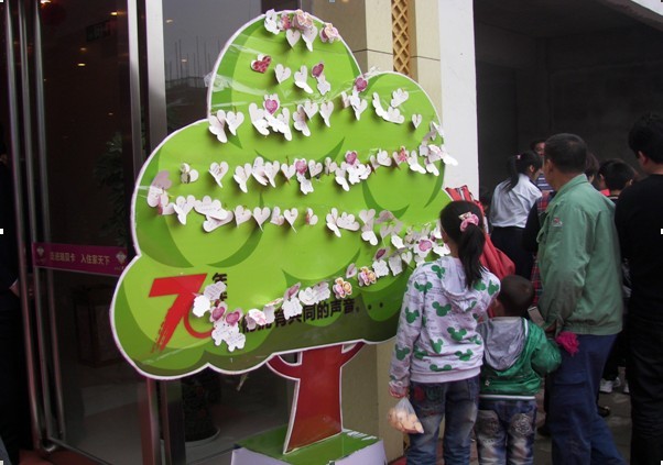 活動正式開始之前,大家在許愿卡上認真的填寫著對親人、朋友的無限關愛,并且鄭重的將代表自己祝福心意的卡片掛在許愿樹上。
