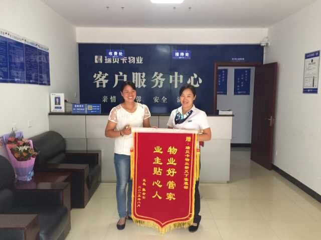 “我的入戶門鑰匙上,還有門卡、入戶門鑰匙、電動車充電卡等物品,現在裝修外來人員這么多,一旦被人拔去后果不堪設想”“住在瑞貝卡新天下,我們業主很放心,這是我們業主的福氣。”張女士拿到鑰匙后,很是感激,于8月27日上午,特送錦旗,以表示對客服助理員周鳳娜的謝意。