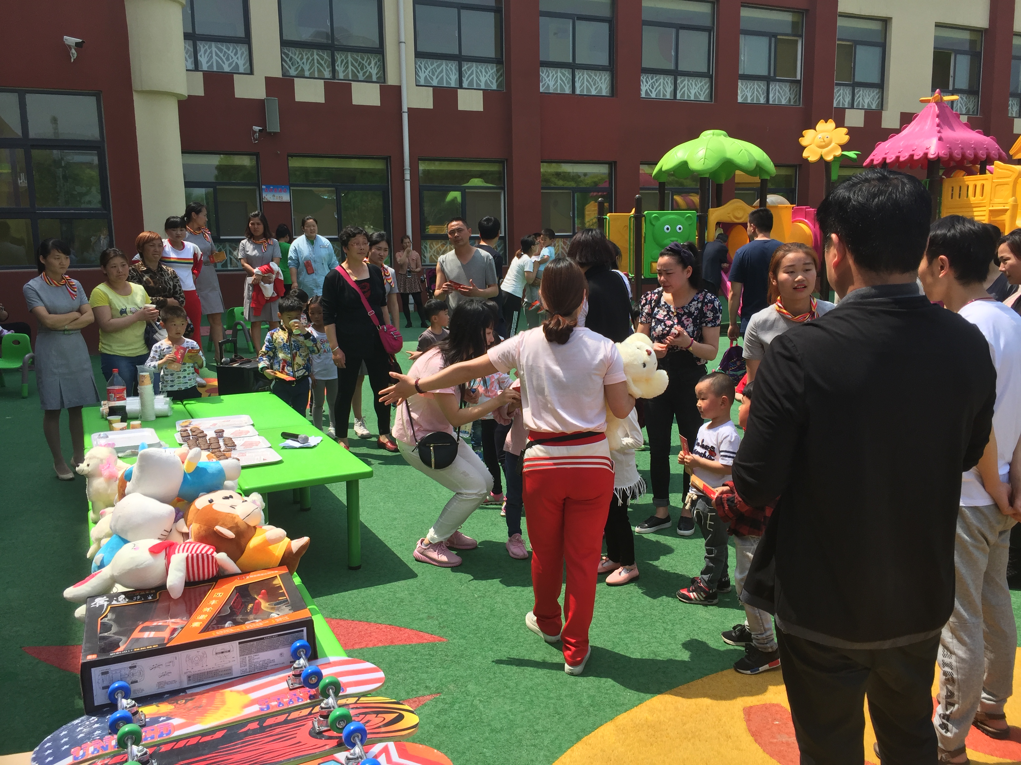 小朋友們在家長和專業指導老師的幫助下,耐心聽取游戲規則后開始各種嘗試練手,為比賽開始熱身運動,小腳踩大腳,小推車賽跑等游戲陸續開始,在炎熱的天氣下也阻擋不了家長和孩子們的拼勁,大人小孩細心配合,有來有往,現場充滿了活躍的氣氛,通過這次活動讓孩子和爸爸媽媽之間的感情更加深化,大人看著孩子玩的這么開心,心里充滿了喜悅;不一會兒,一個個游戲比賽名次誕生了,領到自己心愛的禮品,這是孩子和家長共同努力得到的勝利品,整個現場充滿了愛意而富有生機。