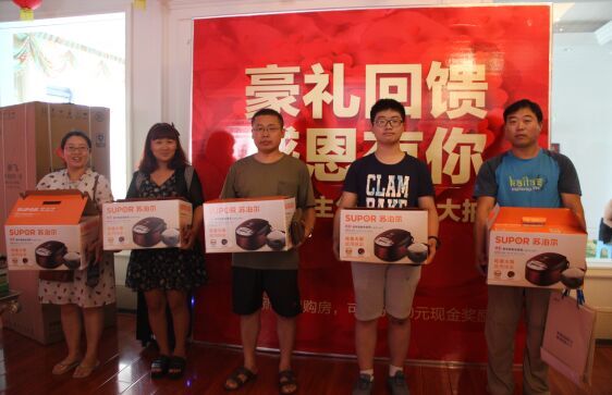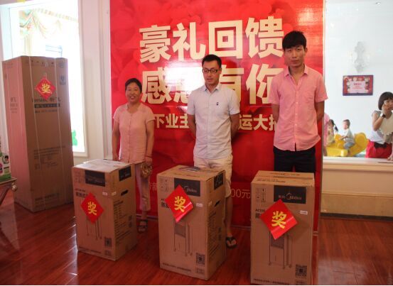 為了答謝老業主長期以來對于漯河瑞貝卡家天下項目的大力支持與厚愛,漯河家天下項目組于2016年7月16日在售樓中心舉行了一場以“豪禮回饋,感恩有你”為主題的家電抽獎活動;顒庸苍O立了一等獎1名(新飛三開門冰箱一臺)二等獎3名(美的空調扇1臺)三等獎5名(蘇泊爾電飯煲1臺),為了提高各位業主朋友的積極性,特意在抽獎的過程中穿插了有趣的吃西瓜比賽,分為男子組,女子組和兒童組,讓盡量多的業主參與到活動中來,也讓客戶更長時間的在售樓部停留,同時也為銷售講解贏得了機會。經過將近兩個小時的19#1509的業主劉永剛幸運抽中,劉大叔異常得激動,昨天接到活動通知,今天第一個就來到了現場,沒想到自己能抽中一等獎,對我們瑞貝卡公司也表示了感謝,對我們的項目也是贊不絕口。由于一等獎獎品較大,我們的物業公司也專門派人替劉大叔送到了家,劉大叔更是對我們的服務表示感謝,也更加堅定了他對瑞貝卡的信心。本次活動到訪220余人,并在當天大定3套。