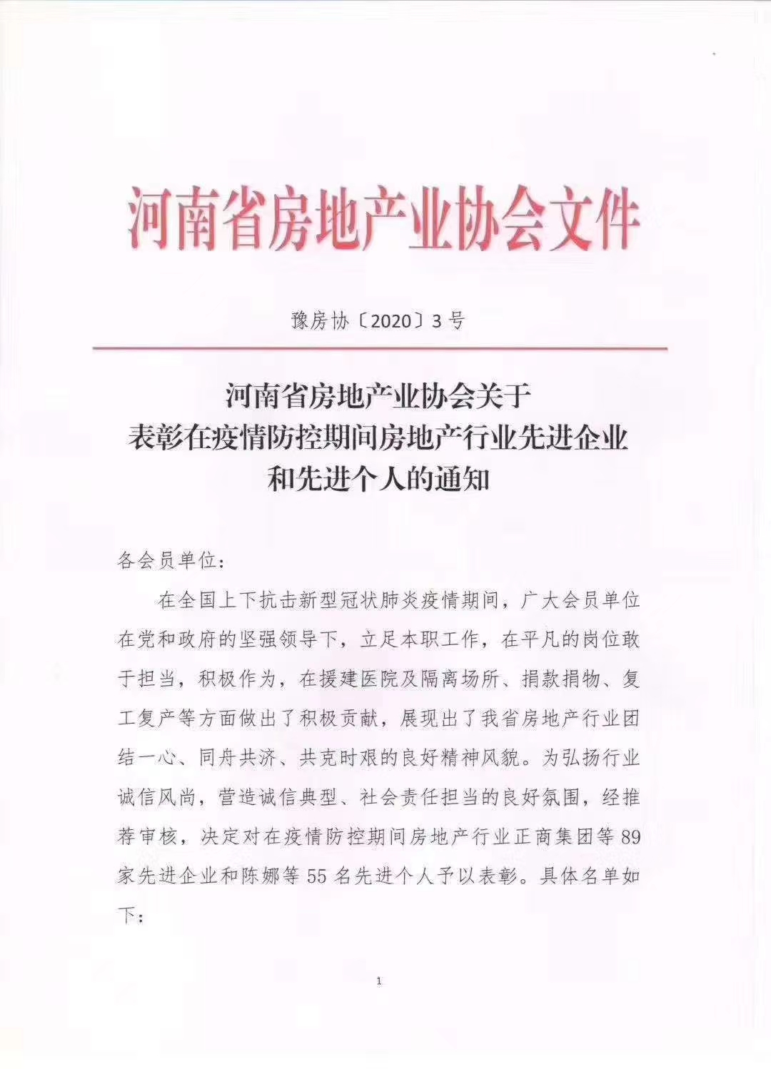 4月24日,河南省房地產業協會下發《關于表彰在疫情防控期間房地產行業先進企業和先進個人的通知》(以下簡稱《通知》)。河南瑞貝卡房地產開發有限公司(以下簡稱瑞貝卡地產公司)及該公司總經理鄭文基獲表彰。