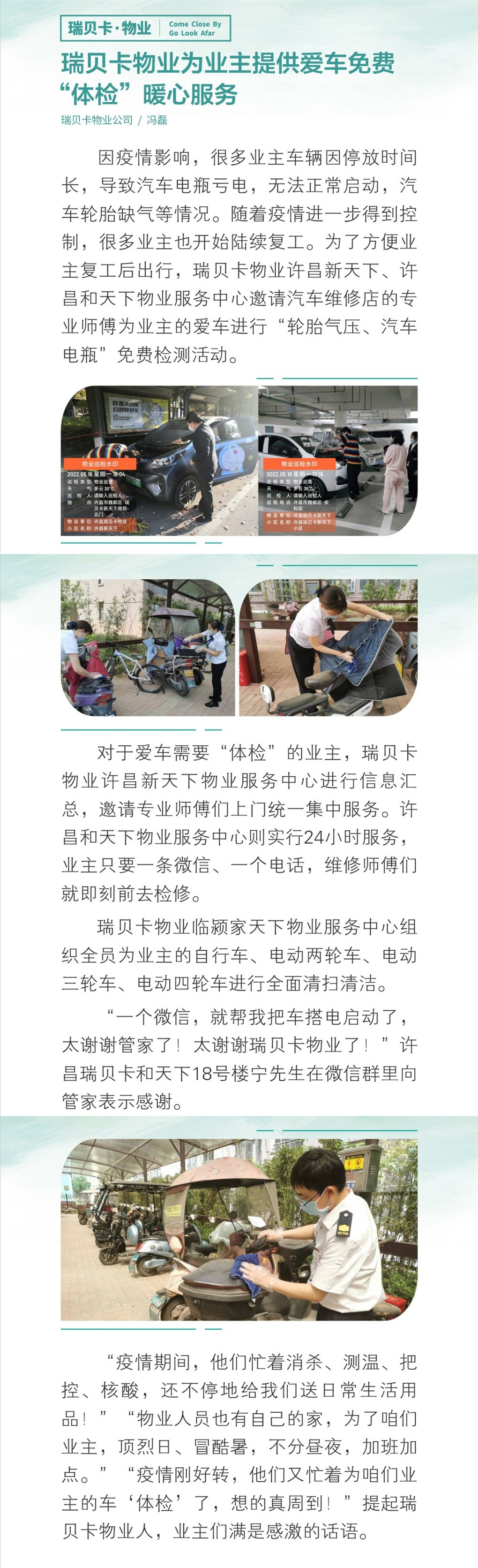 瑞貝卡物業為業主提供愛車免費“體檢”暖心服務