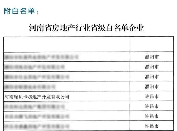 河南瑞貝卡地產以17年的穩健經營與誠信口碑實力入榜,位列優質房企白名單