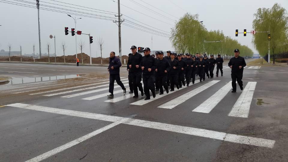第一個項目是跑步,圍著潩水莊園1#地和2#地各跑一圈。公維部人員經常參加訓練,你看他們的步伐是那樣矯健,身體是那樣輕盈,跑了一圈看似一點也不累。再看客服部人員和工程部人員,由于平時缺乏鍛煉,剛跑了一圈就開始喘息不止,腿和腳也開始不聽使喚,沉得抬不起來,即使這樣也沒有一個人掉隊。我們不停地跑著,聽著鞋子摩擦地面的沙沙聲,任憑汗水抑或是雨水打濕我們的衣裳,沁滿我們的額頭。跑到小區門口,我們整齊的步伐,嘹亮的口號贏得好多業主的陣陣喝彩。得到業主的贊許我們覺得不那么累了,步伐輕松了許多。