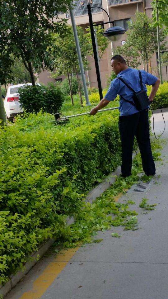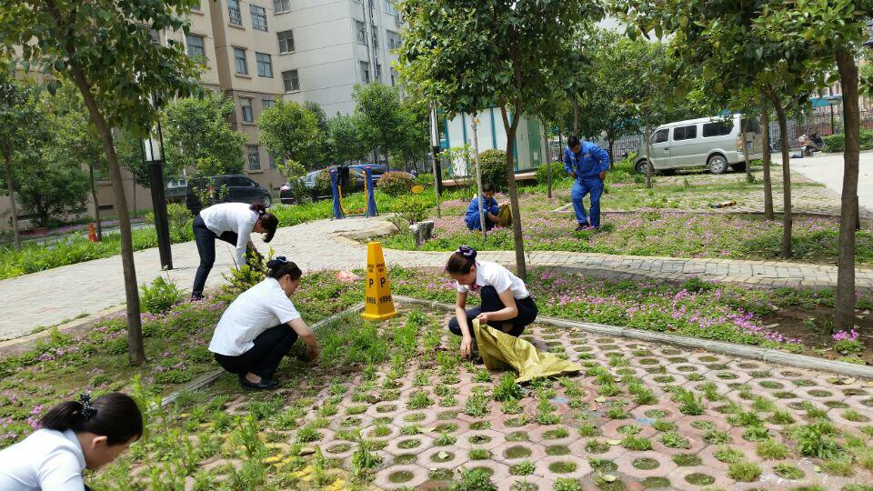 拔草時由于有許多帶刺的草,有的員工不小心扎了手,卻也沒有怨言自己吹吹,就又開始接著干了。工程人員修剪時滿身滿臉弄得都是草沫和著汗水粘貼在臉上,但是他們每個人看著自己的親手勞動的“成果”。聽著業主的夸獎“你們物業上的人啥都會干呀!”員工們的心理是高興的。