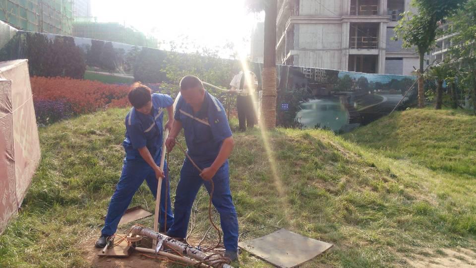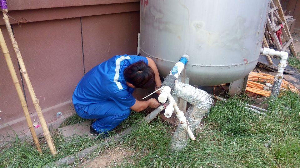 無塔供水設備需要定時的排沙,每周固定時間工程人員對無塔供水設備進行排沙,不定時對設備進行檢查確保營銷中心能夠正常用水,圖為工程部對無塔供水的日常維修保養。
