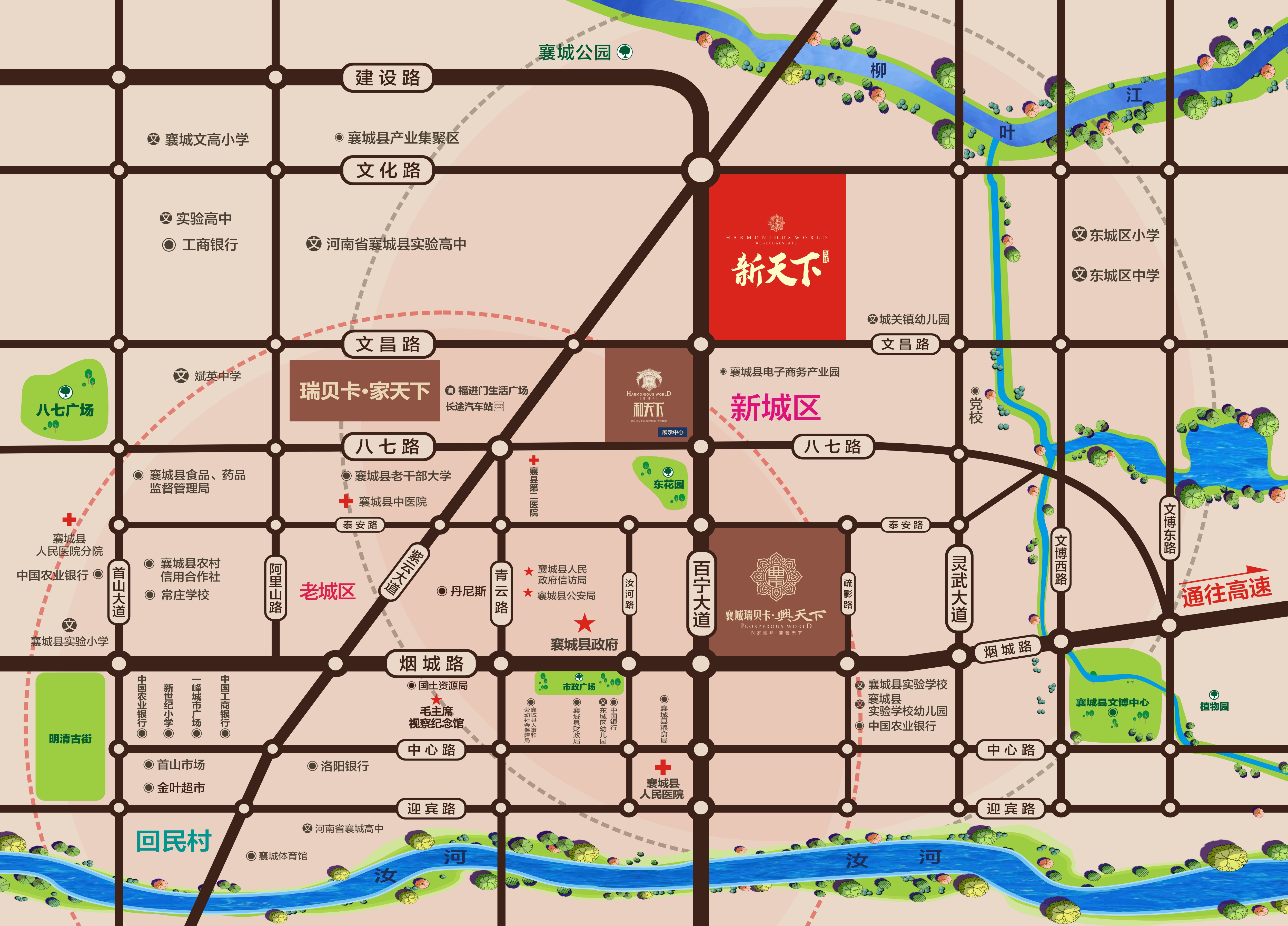 【生態】:毗鄰350畝襄城公園,北鄰柳葉江,南望金襄湖,生態宜居之所;