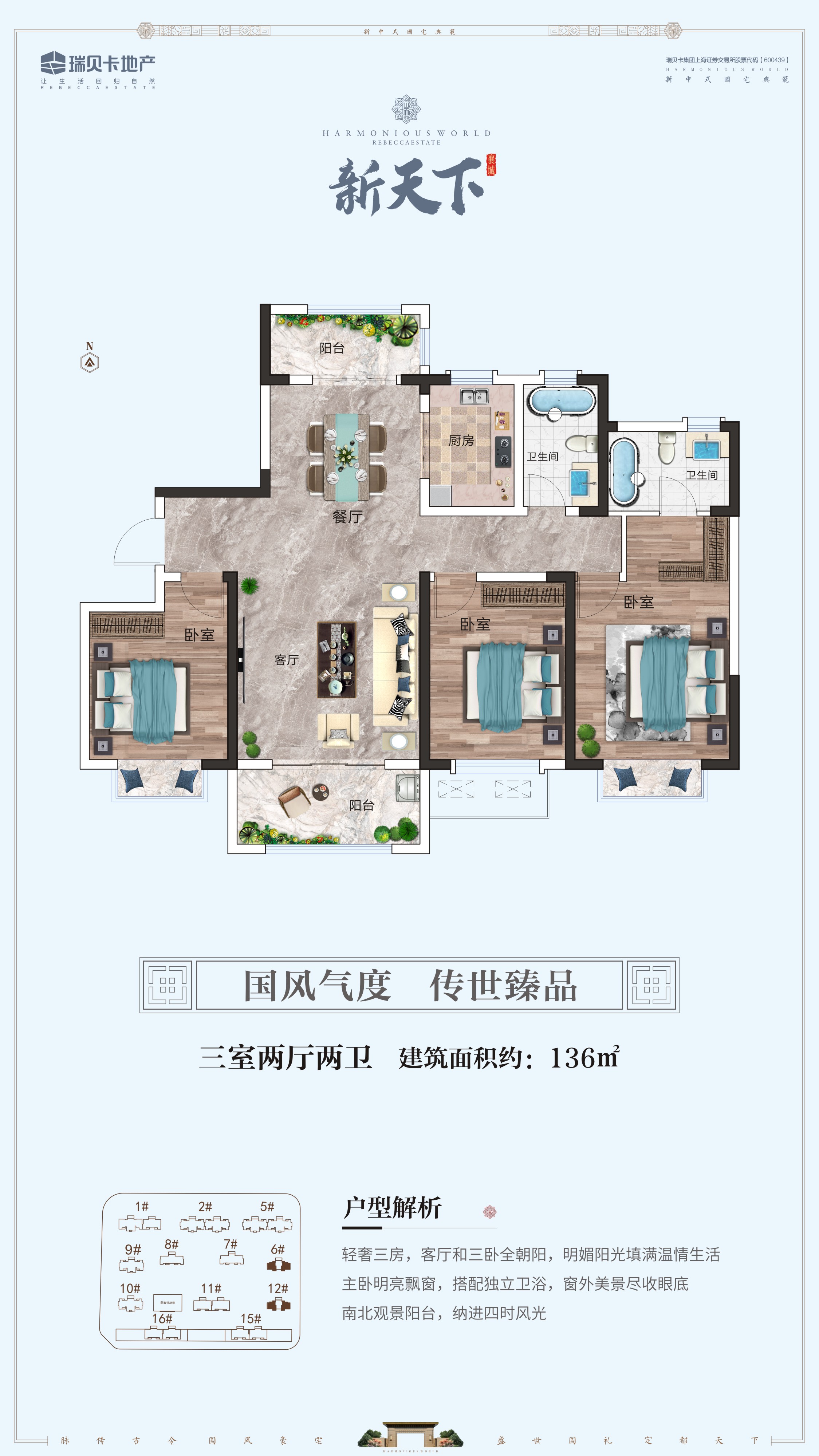 首頁 > 地產力作 > 襄城縣項目襄城瑞貝卡新天下是河南瑞貝卡地產在襄城的第四個樓盤。瑞貝卡地產進駐襄城12年來,相繼開發了家天下、和天下、興天下3個高檔社區,服務數萬業主。 2019年,推出天下系扛鼎之作——新天下,該項目位于襄城縣中軸百寧大道東側,文昌路北側,占地約150畝,超低1.8容積率,綠地率37%,全17層建筑,規劃戶型面積區間115—142平米。整個小區采用圍合式布局,新中式風格建筑,中式園林景觀,盡可能的保證每家每戶采光和通風。