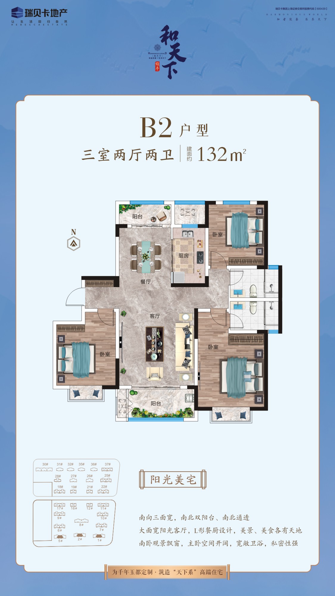 首頁 > 地產力作 > 南陽項目鎮平瑞貝卡·和天下位于鎮平城西核心區,與新縣府一路之隔,南鄰鎮平新一高,西鄰中國玉雕大師園、趙河自然景觀帶。整體規劃10-17層墅境小高層,全地下停車位,1.9超低容積率,125-132㎡寬景三房,140㎡全明四房。小區內部配套鎮平首家五星級標準國際度假酒店、12班制幼兒園、特色商業街,是鎮平縣標志性高端住宅綜合體。